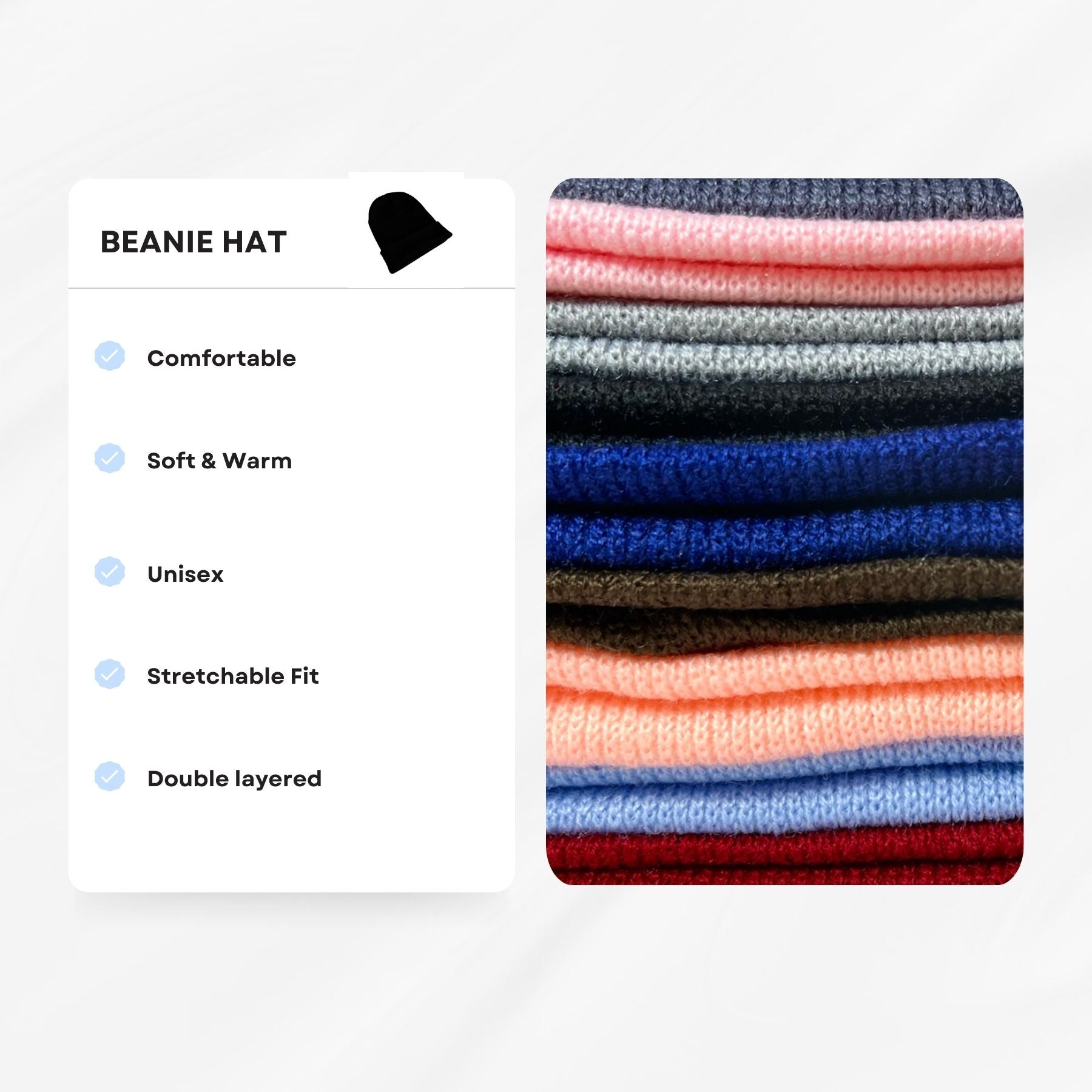 2 pack beanie knit hats are designed with high quality material and are twin layer knit which helps in maintaining its warmth . Easy to pull on stretch beanie hat. Made from soft touch acrylic and stretches to fit.